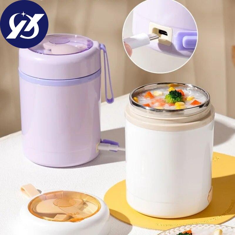 Чашка для завтрака из нержавеющей стали, подключаемая через USB, изолированная чашка для супа, чашка для каши, уличная портативная чашка для воды, изолированная коробка для обеда с подогревом