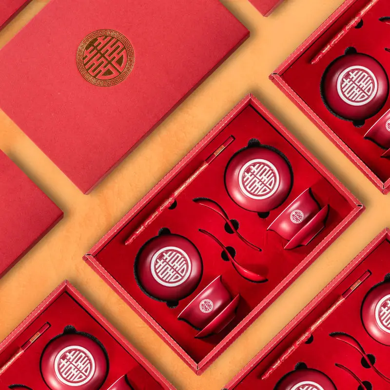 Чашка Jingcha, свадебная церемония Xiwan, чашка Xibei, смена Красного рта, крышка чаши, чайный набор, пара мисок, набор палочек, свадебные принадлежно...