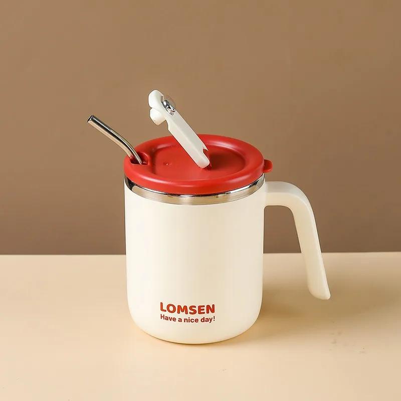 Чашки для кофе из нержавеющей стали 304, кружка для воды с соломинкой, бытовая, офисная, дорожная, термостойкая, питьевая посуда, подарки 500ML