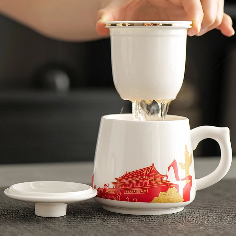 Чашки для фильтрации и разделирования чая с узором в китайском стиле, с крышкой, белые фарфоровые кружки, керамическая офисная чашка для домашних напитков, 1 шт.