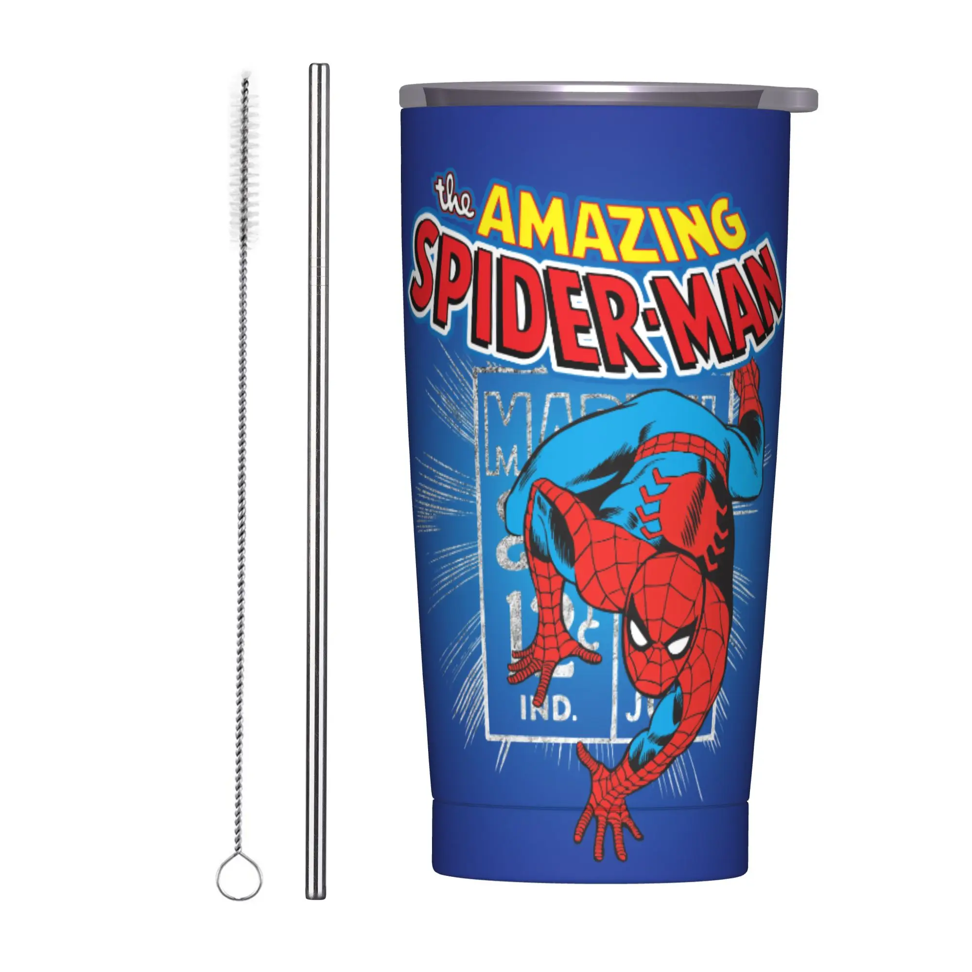 Человек-паук с рисунком в стиле ретро, термочашка с вакуумной изоляцией и крышкой, соломенные уличные кружки, бутылка для воды, 20 унций
