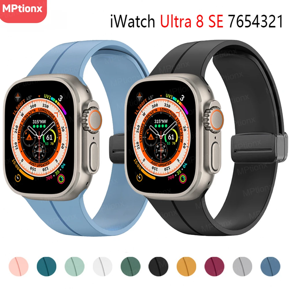 Magnetic Buckle Strap For Apple Watch Ultra Band 49mm 44mm 45mm 40mm 41mm 42mm 38mm Silicone Bracelet iWatch Series 8 7 6 5 3 se