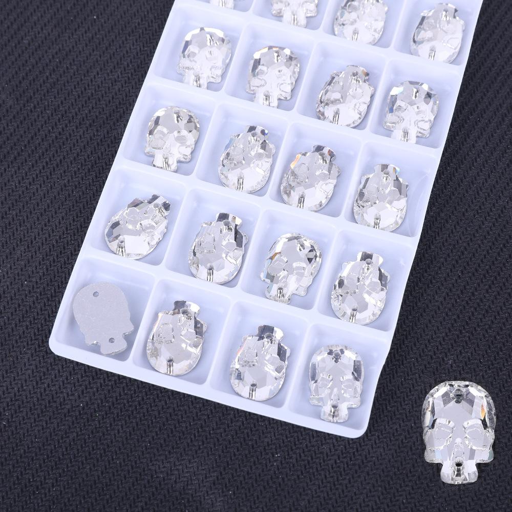 Череп Плоское Дно Двойное Отверстие Стекло Ручной Шов Дрель Белый AB Кристалл Плоская Пряжка Сделай Сам/Двойное Отверстие Дрель для Драгоценных Камней 13x18mm 20pcs/bag белый