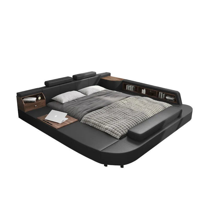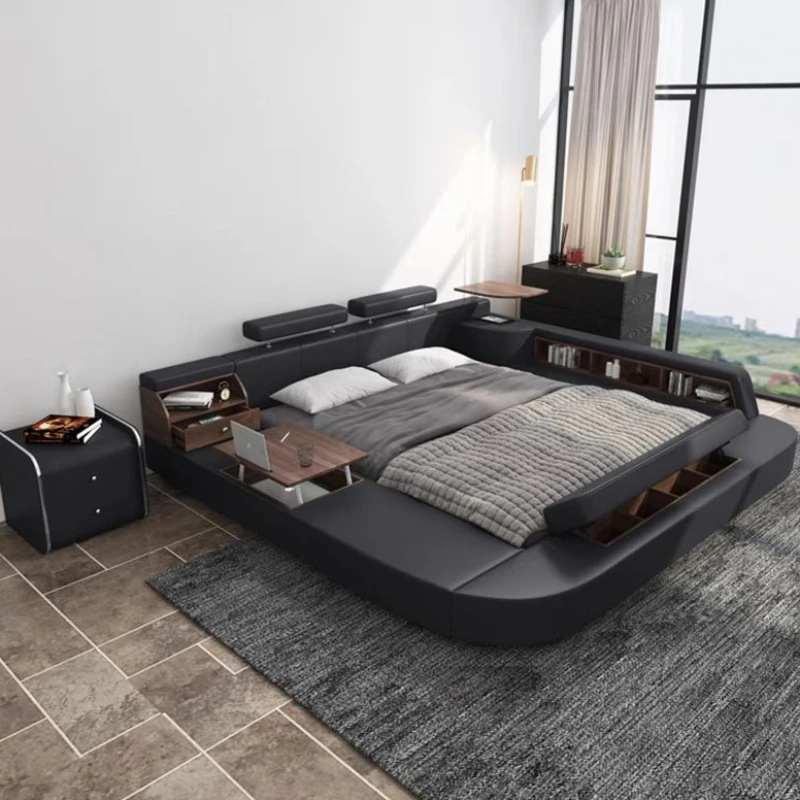 Черная Высококачественная Эстетическая двуспальная кровать, Уникальная современная роскошная двуспальная кровать, двуспальная многофункциональная кровать, мебель для дома