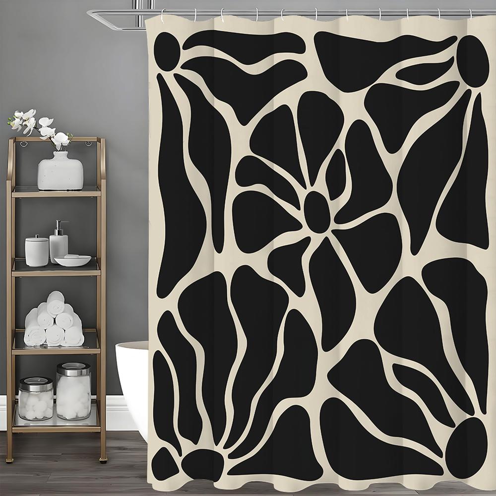 Черная Цветочная Абстрактная Живопись Современная Шторка для Душа, Декоративная Шторка для Ванной Комнаты, Водонепроницаемая Шторка для Душа с Крючками 90*180cm