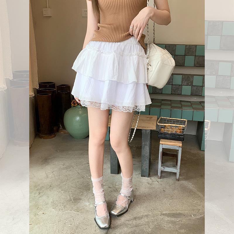 Черная клетчатая юбка с кружевной вставкой, летняя универсальная, непросвечивающая, пышная юбка-торт average size