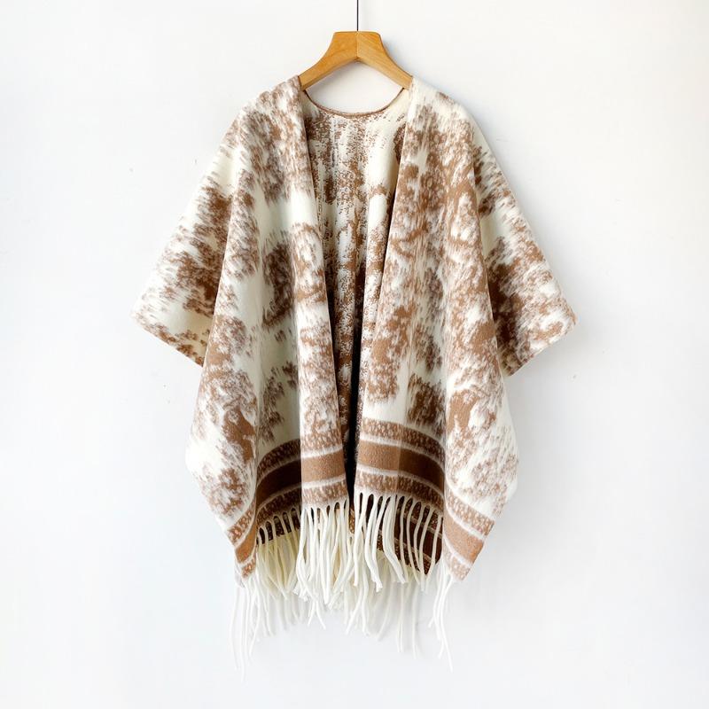 Черная шаль с кисточками женская осенне-зимняя новая модная универсальная ретро дорожная теплая накидка-кейп 178*114cm