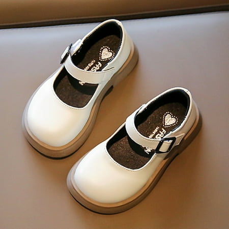 nsendm Fashion Spring Summer Children Casual Shoes Girls Thick Sole Slip On Buckle Comfortable Solid Color Dress Shoes Buckle Beige 3 Years