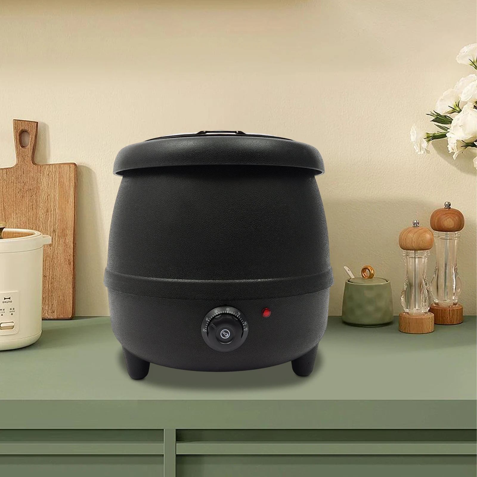 Черная электрическая нагревательная кастрюля большой емкости, 10 л, настольный бойлер для горячей воды с ложкой для домашней кухни, использования в ресторане