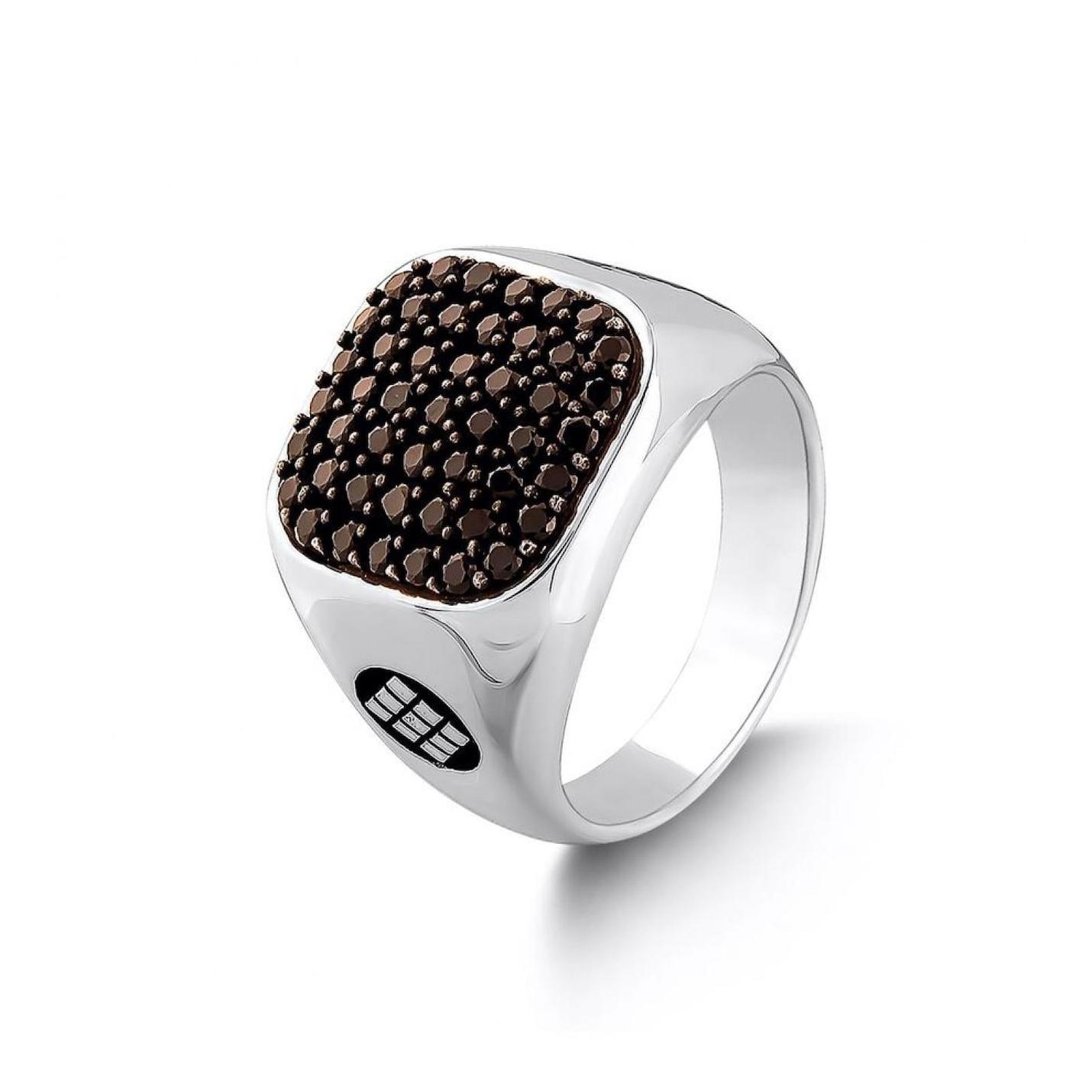 Черное мини-каменное кольцо из стерлингового серебра 925 пробы с узором из плитки
