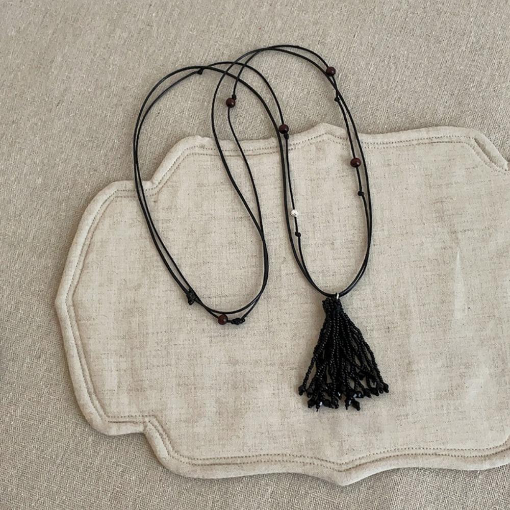 Черное ожерелье с кисточкой, регулируемая длина, веревочная цепочка, чокеры, ожерелье с бусинами, длинное ожерелье, ювелирный подарок Double-Layered