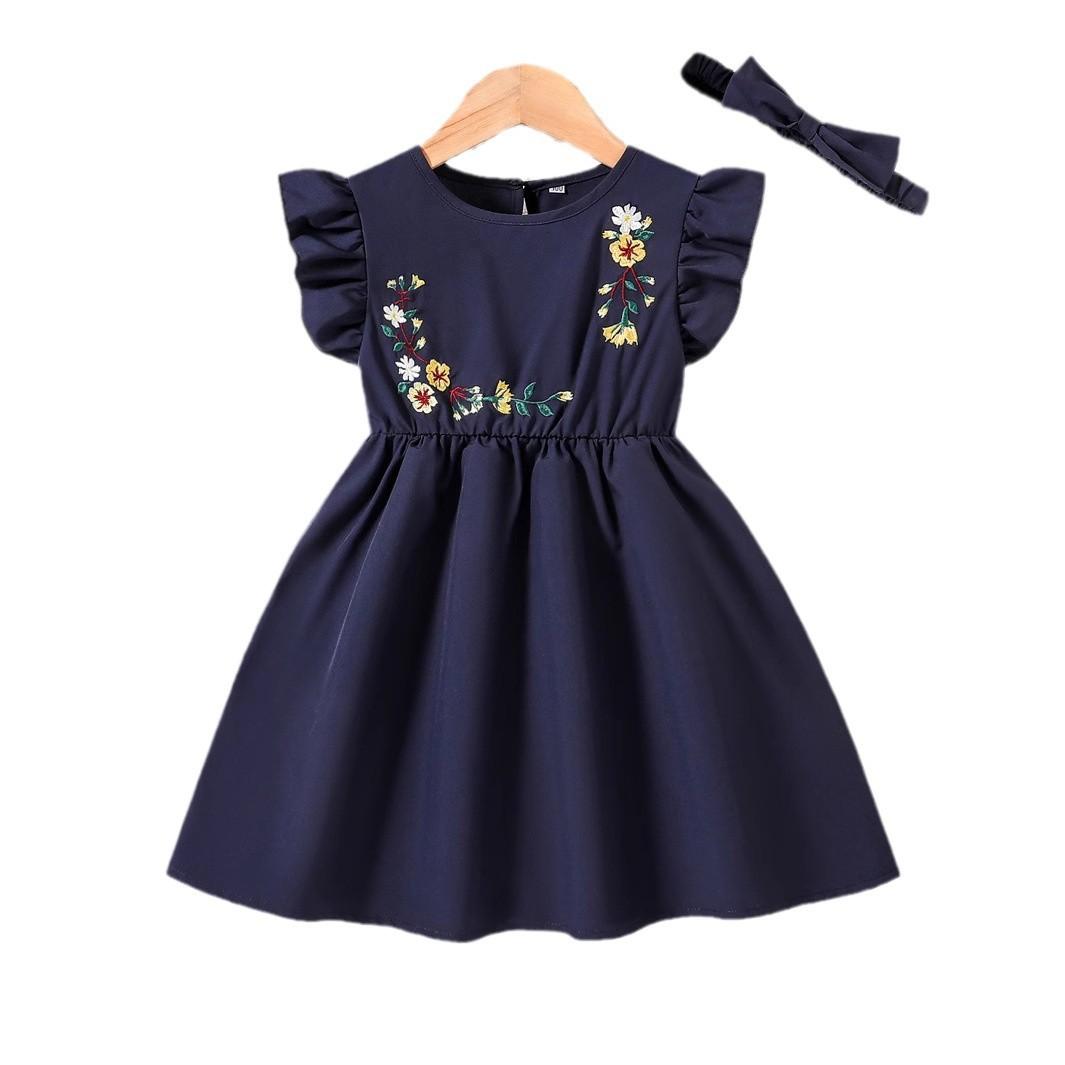 Черное платье для девочек, летнее детское модное платье принцессы 130cm чёрный