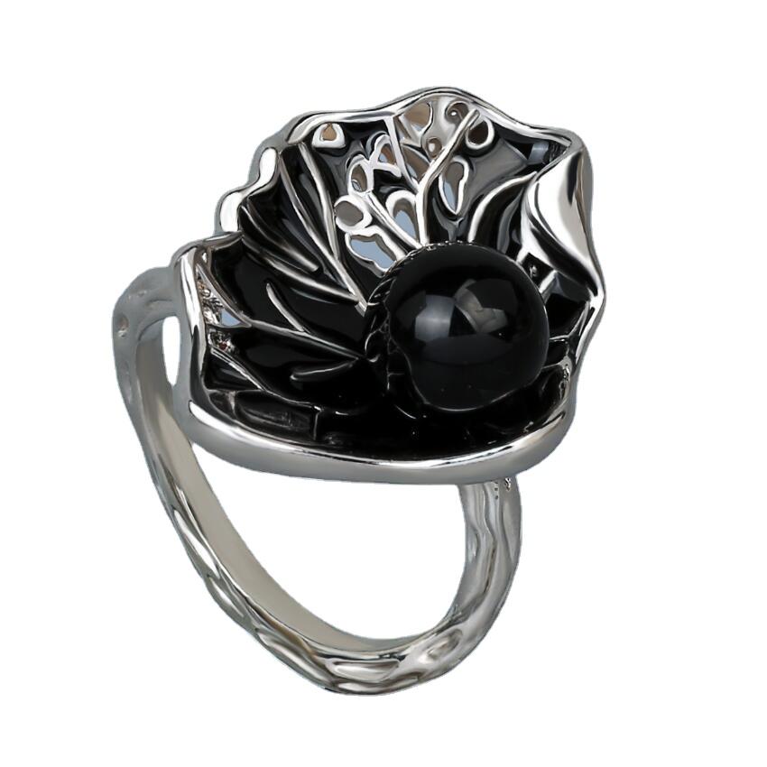 Черное полое дизайнерское женское кольцо, модное ювелирное изделие ручной работы с эпоксидной эмалью, ювелирное изделие для коктейльной вечеринки