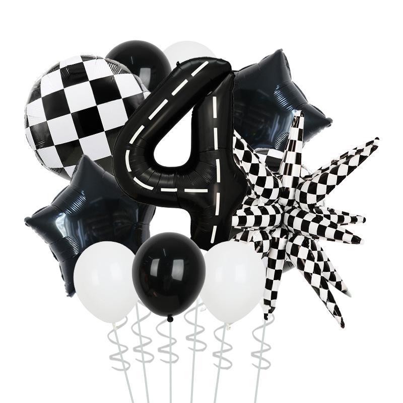Черно-белая клетчатая шахматная доска Взрывная звезда Алюминиевая пленка Шар 40 дюймов Черная линия Цифровой набор воздушных шаров для дня рождения Подарок для вечеринки Set 4