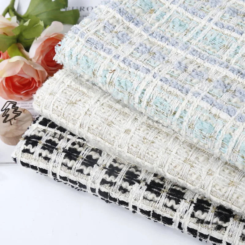 Черно-белая полоска, плетеная твидовая ткань с золотой проволокой для шитья, женская осенняя куртка, платье, костюмы, пальто, сумка, материал для шитья своими руками