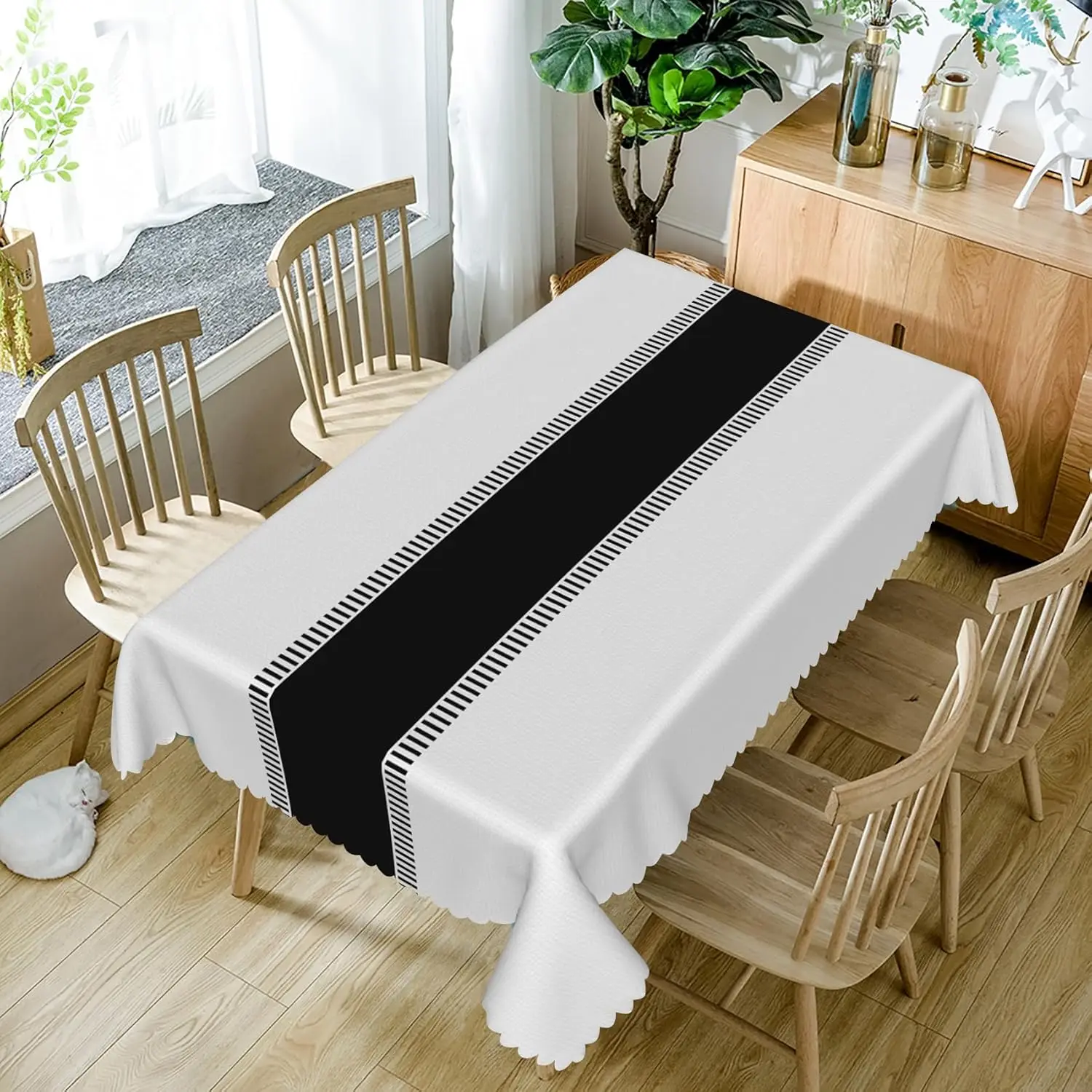 Черно-белая прямоугольная водонепроницаемая скатерть из полиэстера