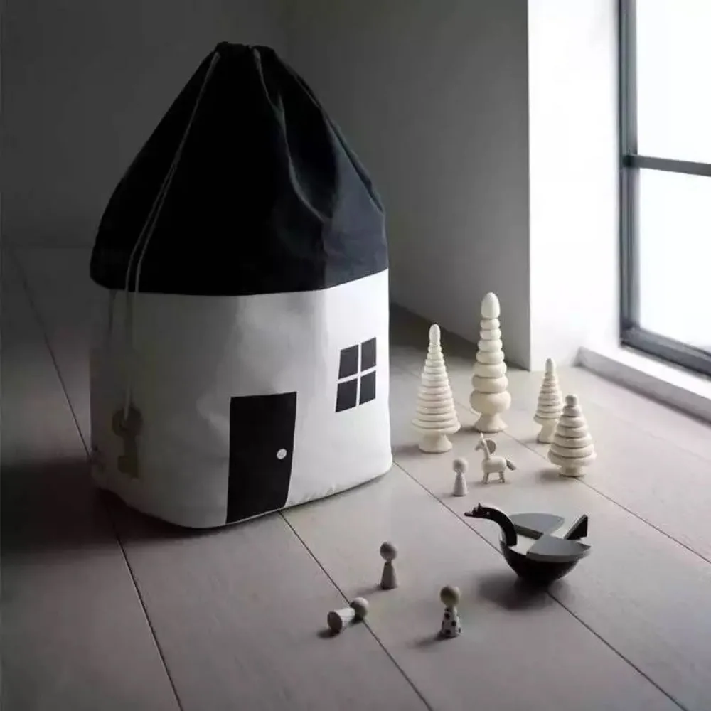 Черно-белая сумка для хранения рта, прочная Холщовая Сумка для хранения в форме домика, портативная легко моющаяся Декоративная Сумка для хранения