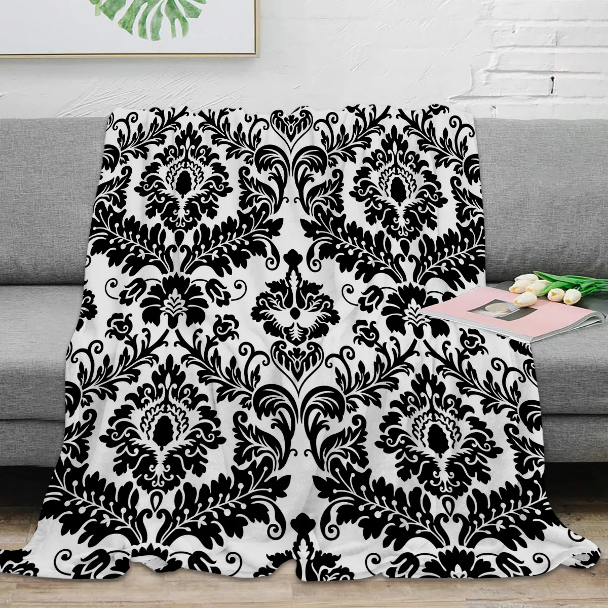 Черно-белое одеяло в стиле барокко, теплое одеяло из микрофибры, фланелевое одеяло для спальни, покрывало для кровати