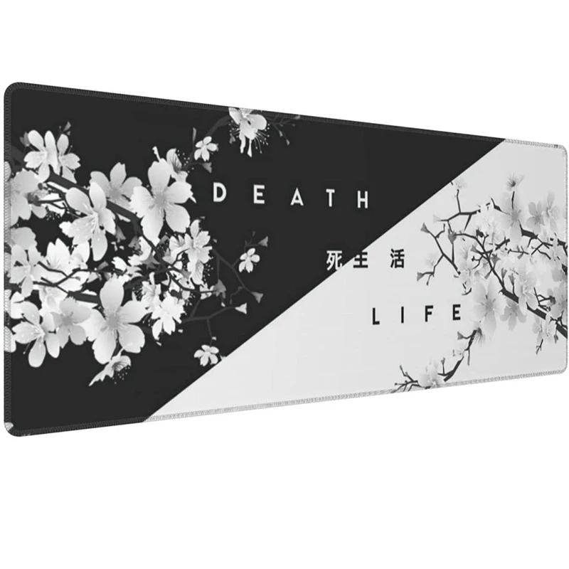 Черно-белый игровой коврик для мыши с цветком вишни, большая эргономичная мышь, коврик для мыши с прошитыми краями, 31,5x11,8 дюйма
