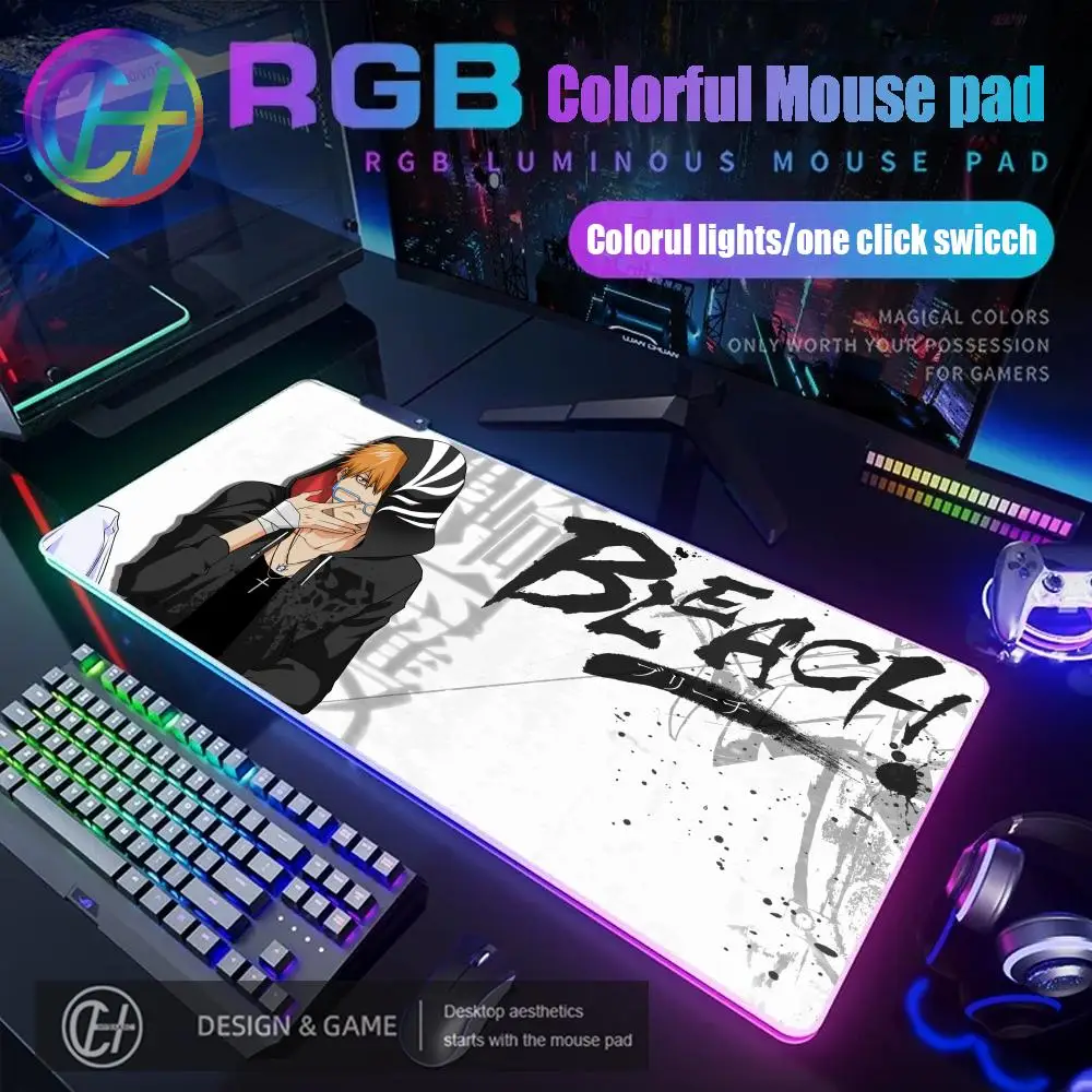Черно-белый игровой коврик для мыши Bleach RGB Коврик для мыши Настольный коврик HD Gamer Большой светодиодный светильник XXL HYBXAXC Коврики для мыши ПК Компьютерный ковер