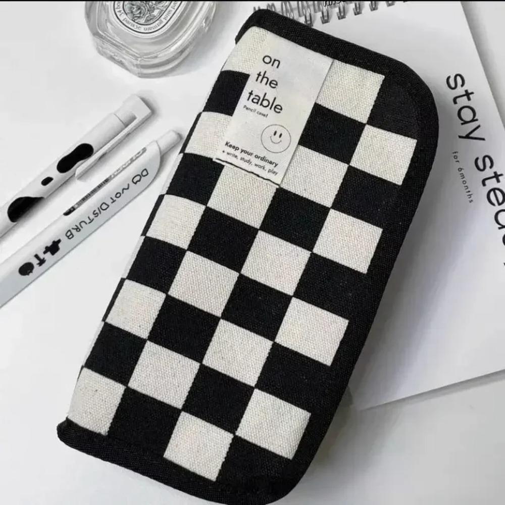 Черно-белый пенал на холсте с шахматной доской, большая вместительная сумка для ручек, сумка для хранения канцелярских принадлежностей для школьников, обратно в школу чёрный