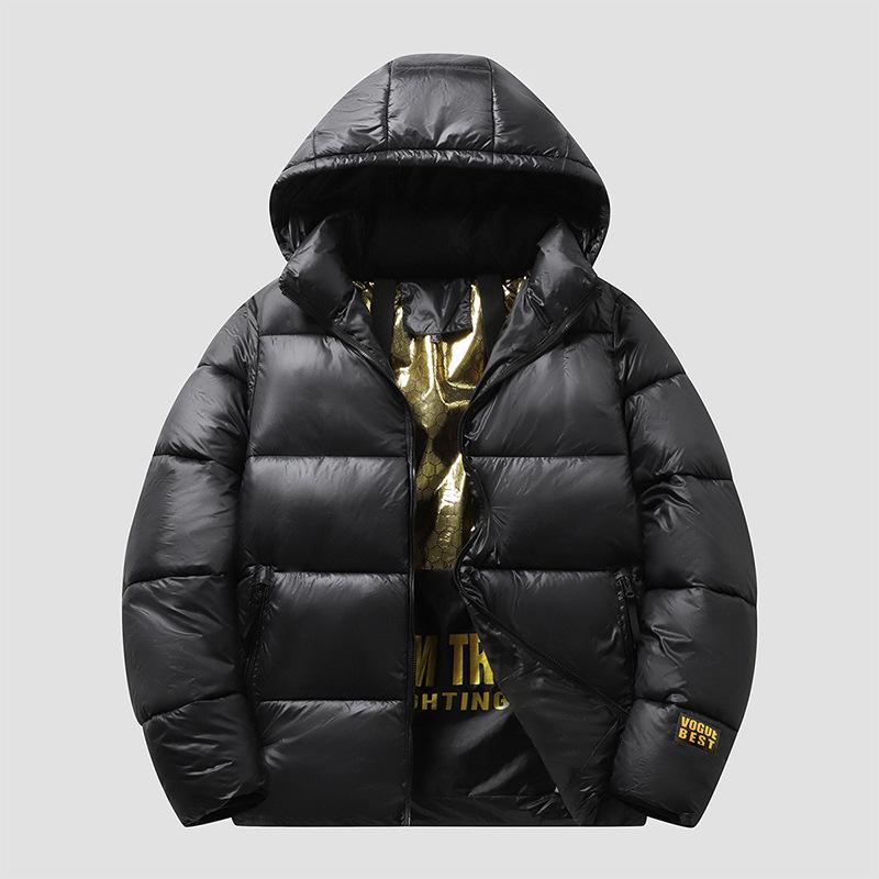 Черно-золотая хлопковая одежда мужская 2025 зимняя парная модель мужская и женская съемная с капюшоном утолщенная стеганая хлопковая куртка 3XL чёрный