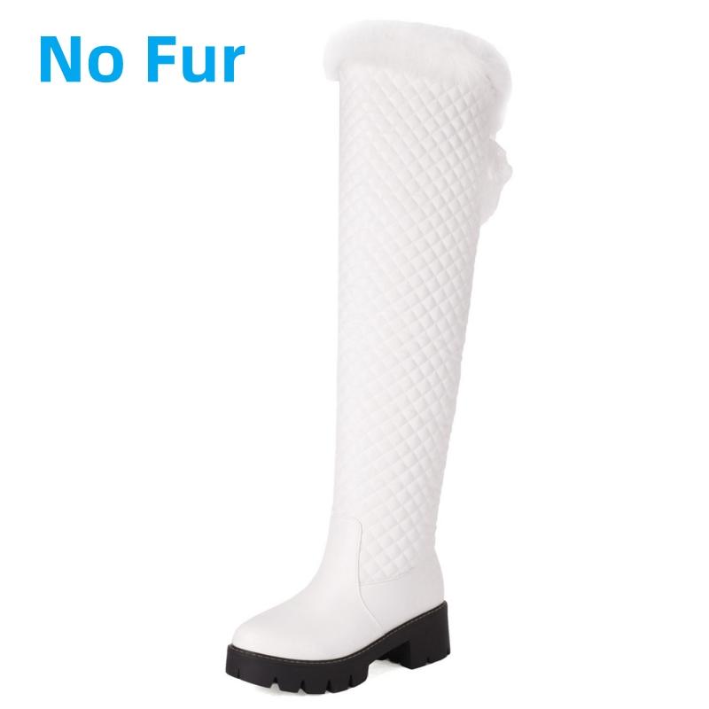 Черные Белые Высокие Снежные Сапоги Женская Обувь Водонепроницаемые Сапоги Выше Колена Женская Мода Мех Теплый Плюш Зимняя Длинная Обувь Дамы 34