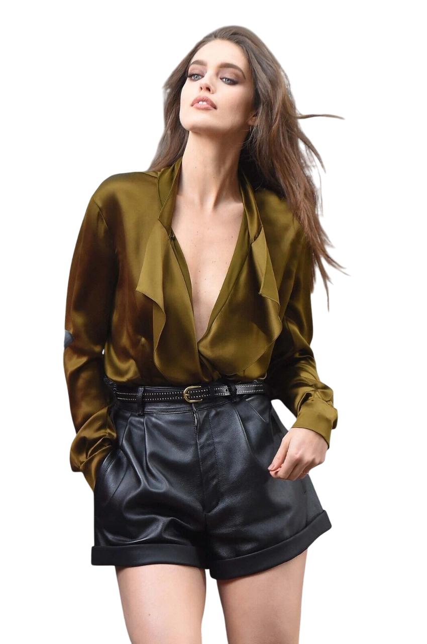 Черные Женские Кожаные Шорты из Натуральной Овчины Ручной Работы в Повседневном Стиле Новые Стильные для Вечеринок 3XL чёрный