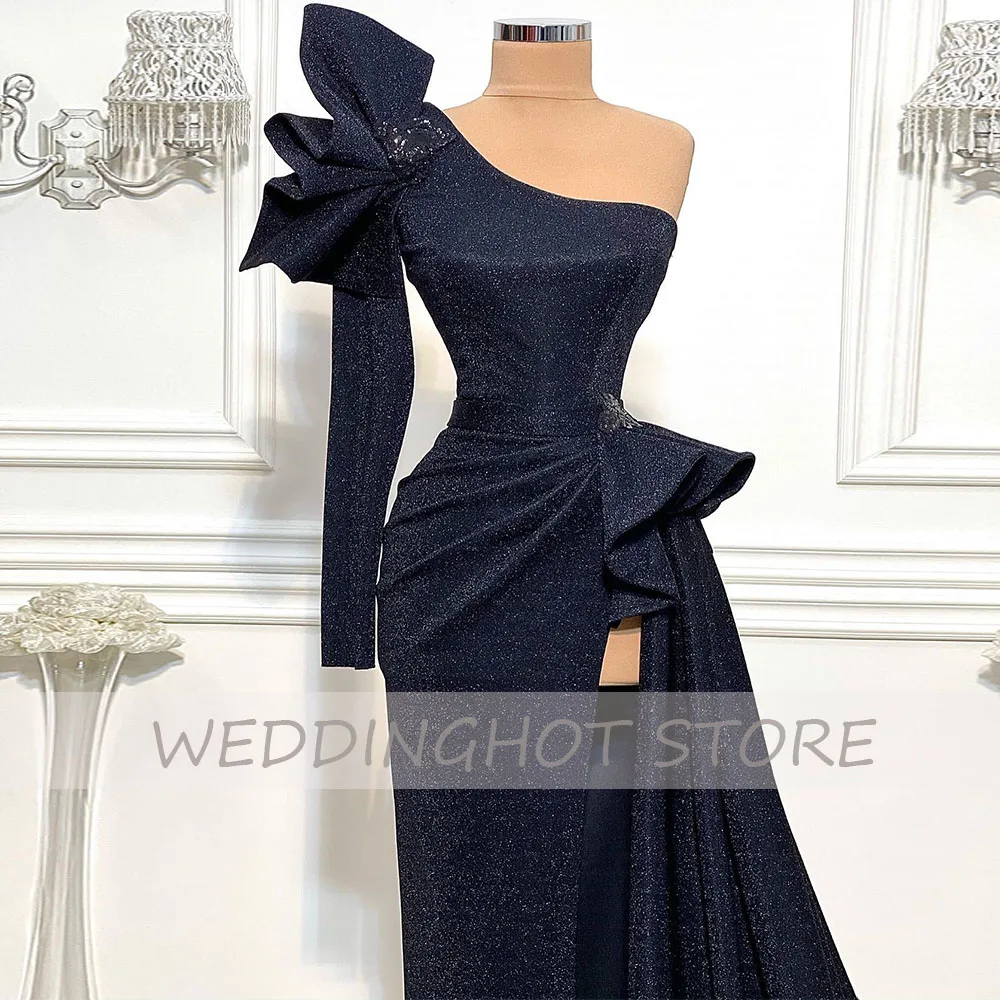 Черные атласные вечерние платья 2021, роскошное сексуальное платье с аппликацией на одно плечо, женское вечернее платье с 3D цветочным разрезом, платье для вечеринки