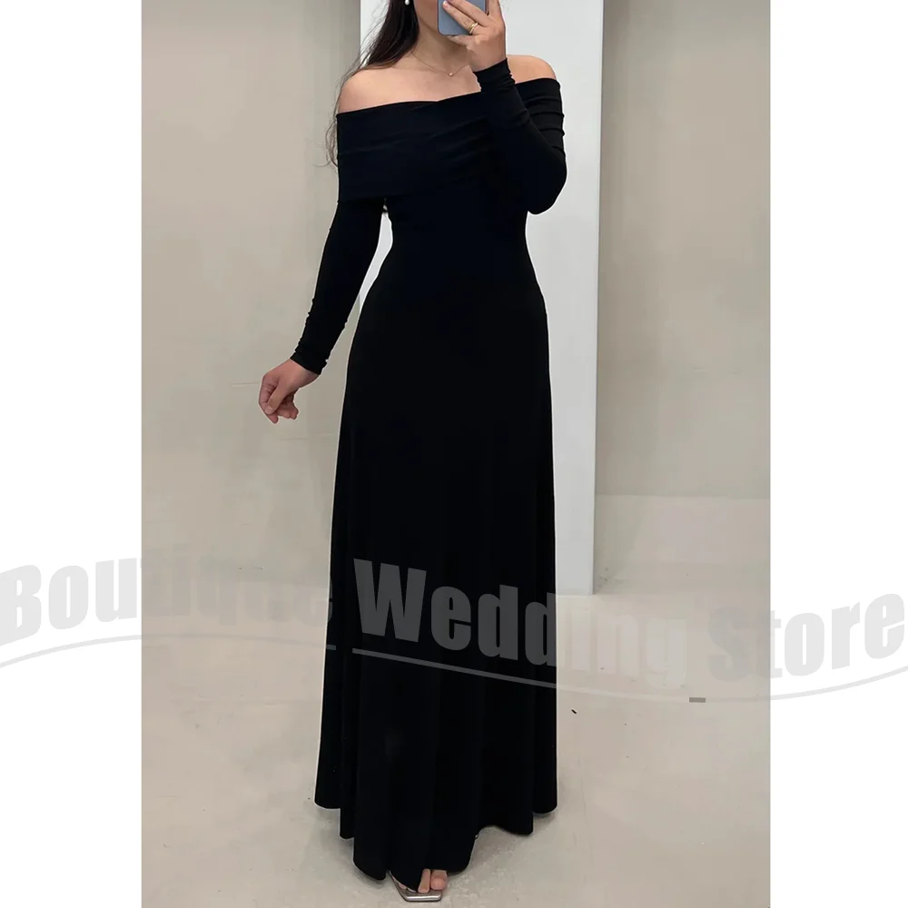 Черные вечерние платья Модные вечерние платья трапециевидной формы без бретелек Шикарные женские платья для выпускного вечера с открытыми плечами и длинными рукавами длиной до пола