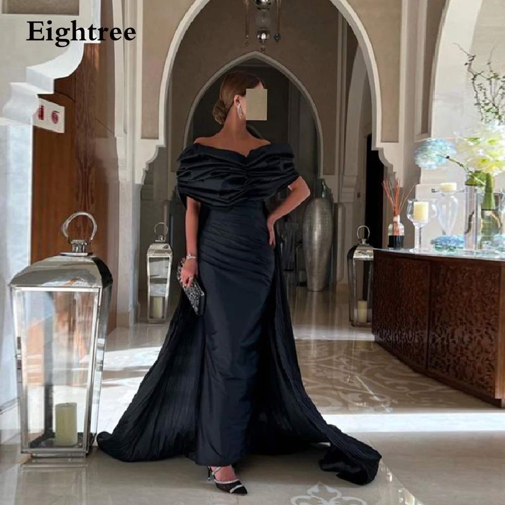 Черные вечерние платья с длинным шлейфом, арабское атласное платье с открытыми плечами, новинка 2022, Vestidos вечерние платья на выпускной, вечер...