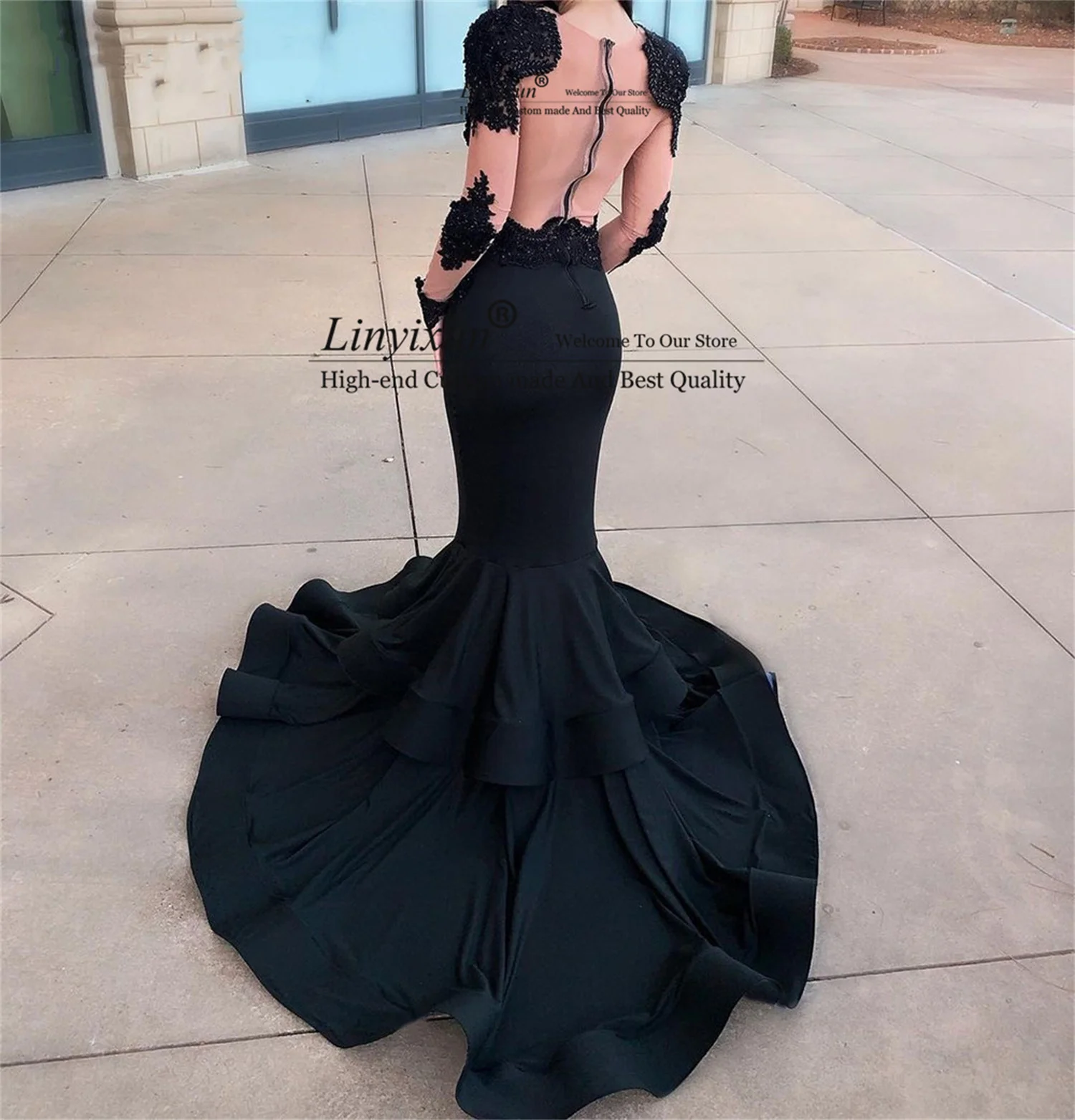 Черные длинные платья-русалки для выпускного вечера с аппликацией из бисера, прозрачные африканские вечерние платья, женское платье для ве...