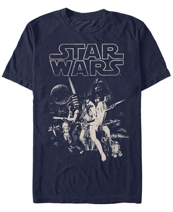 Мужская классическая футболка с коротким рукавом и коллажем персонажей из «Звездных войн» Fifth Sun, синий