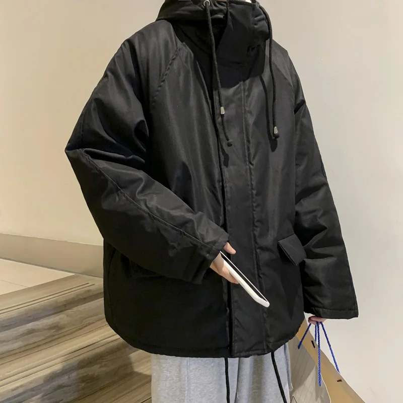 Черные однотонные простые парки с капюшоном зимняя теплая верхняя одежда в стиле сафари с карманами тактическая уличная одежда Мужская Кра...