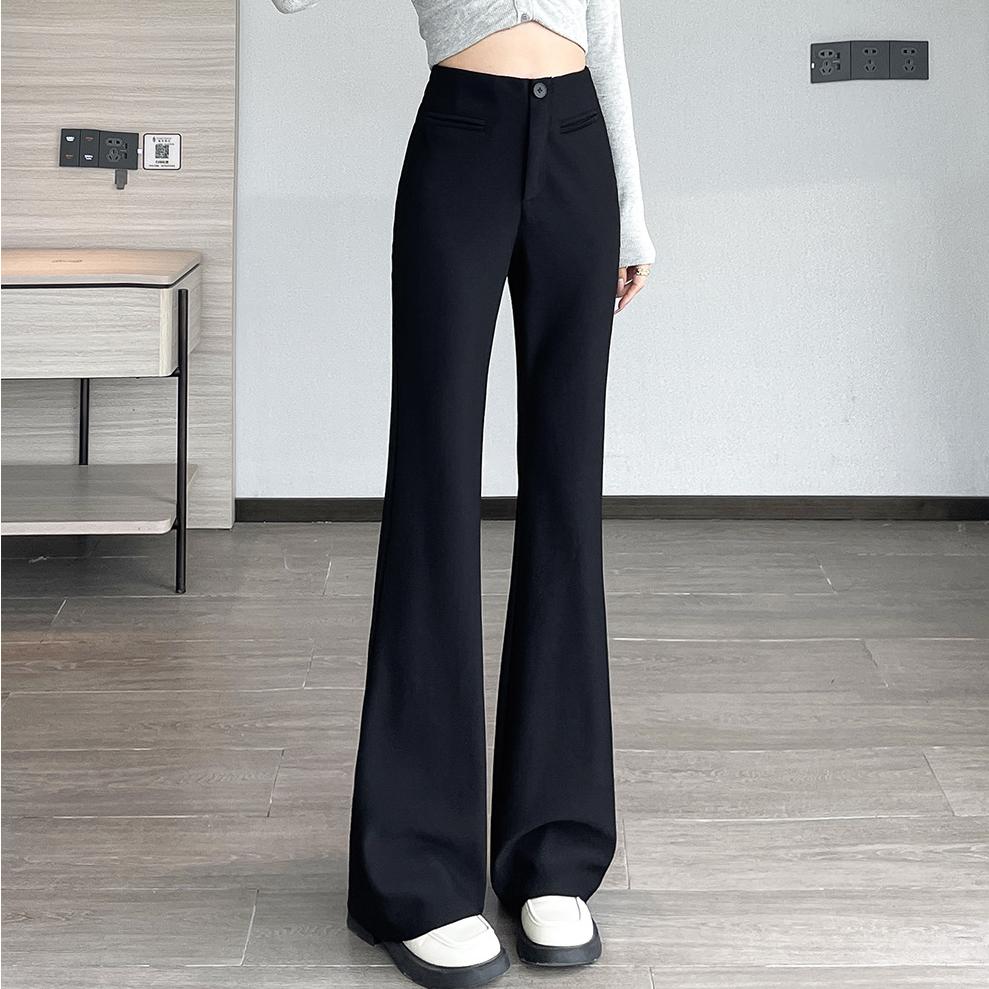 Черные расклешенные брюки для женщин 2025 осень-зима новые с высокой талией, облегающие, слегка расклешенные брюки длиной до пола, прямые узкие брюки для костюма L