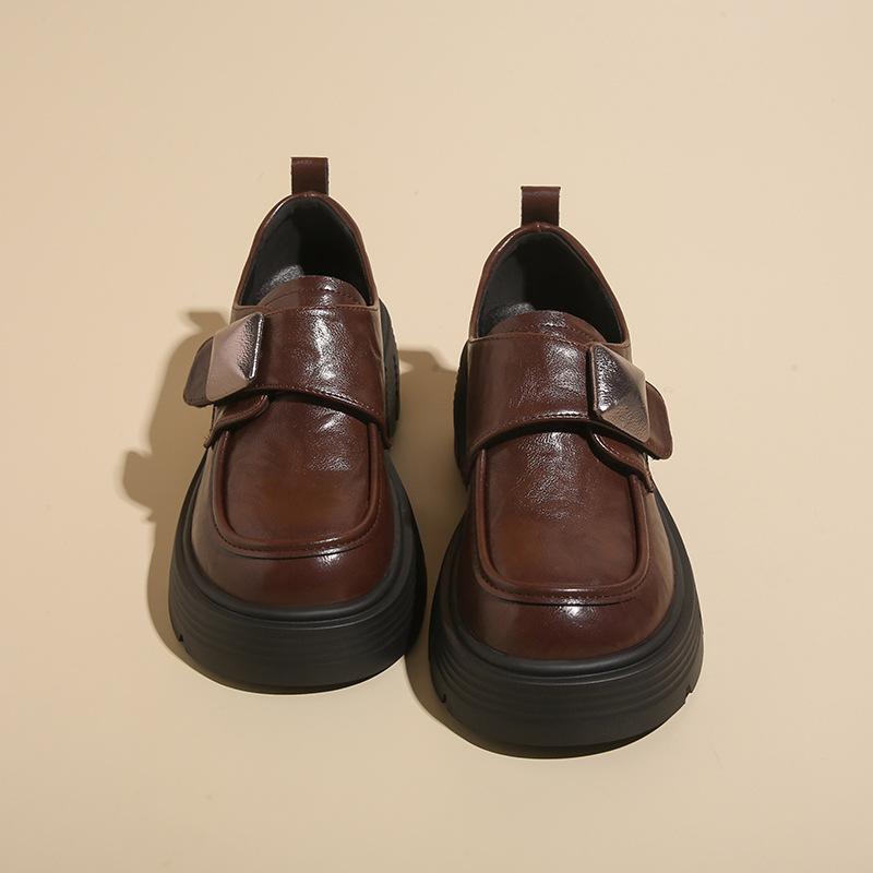 Черные туфли на платформе в британском стиле, маленькие кожаные туфли, женские лоферы на платформе, новая популярная обувь 2025 года, универсальные одинарные туфли jk 40 коричневый