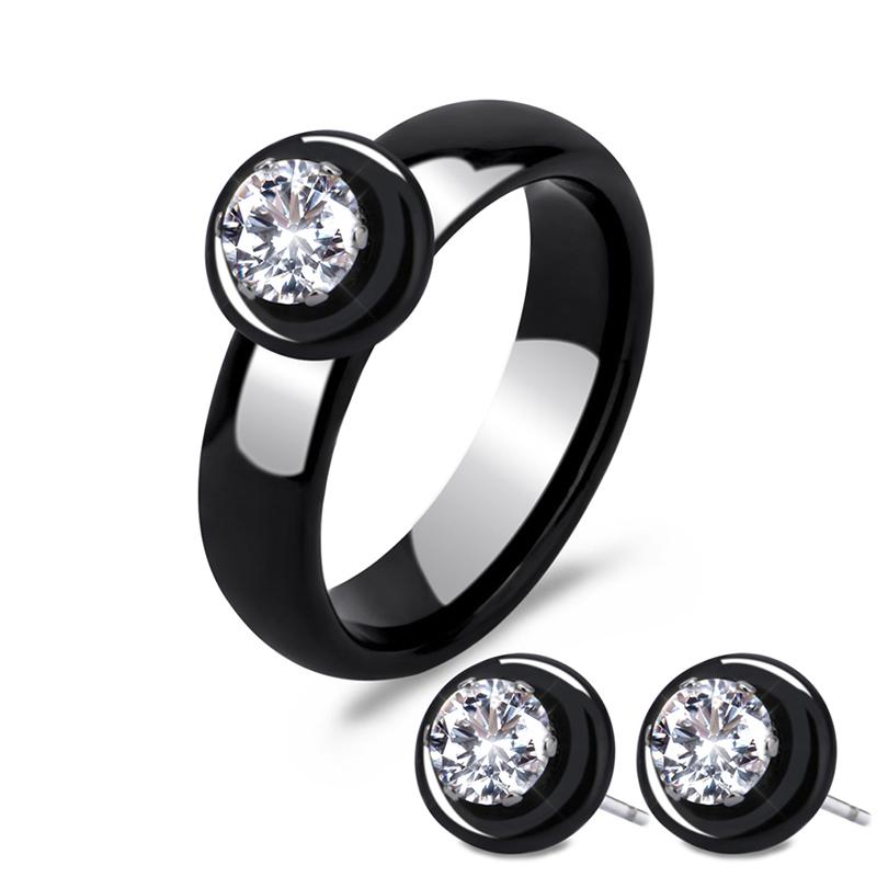 Черный Белый Керамика Bling Горный хрусталь Ювелирные наборы для женщин Кольцо Шпильки Серьги Костюм Простые аксессуары