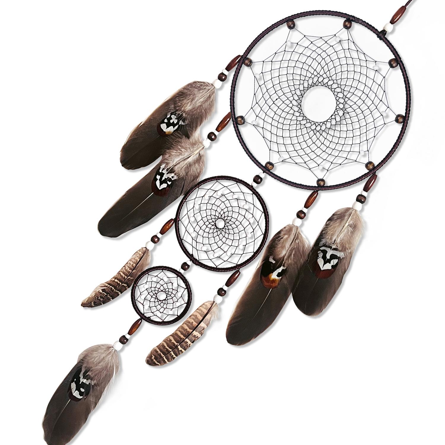 Черный Ловец снов Подвесное украшение Перо Колокольчик ветра Ручной работы Ручное плетение Креативное Настенное украшение Подвеска с тройными кольцами