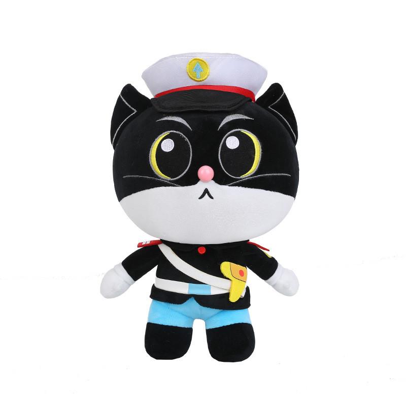 Черный Очаровательный Кот Шериф Плюшевая Игрушка Мягкий Друг для Сна Подарок на Сон для Детей Кукла 35cm
