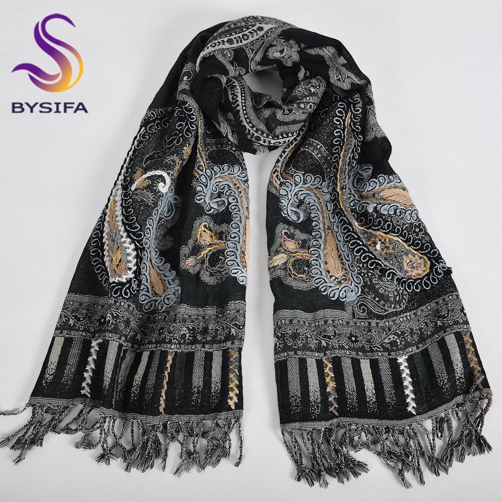 Черный Серый Пейсли 100% Шерсть Шарфы Пашмина Утолщенный Женский Зимний Вышитый Шарф Шаль Модные Аксессуары Теплый Шарф для Шеи