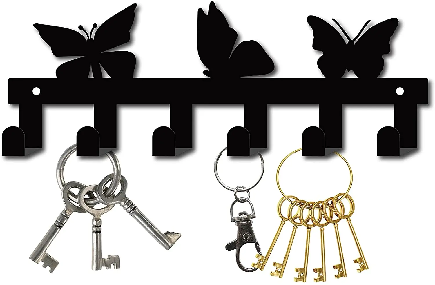 Черный держатель для ключей, настенная подвесная вешалка в форме бабочки, украшение с 6 крючками, ювелирный брелок, рюкзак, сумка для хранени...