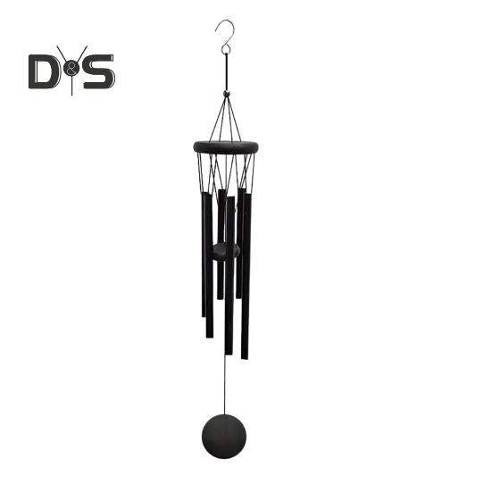 Черный колокольчик с 6 металлическими трубками S-образный крючок натуральная успокаивающая мелодия садовое патио наружное украшение подвесной колокольчик ветряной подвеска подарки на день рождения Round