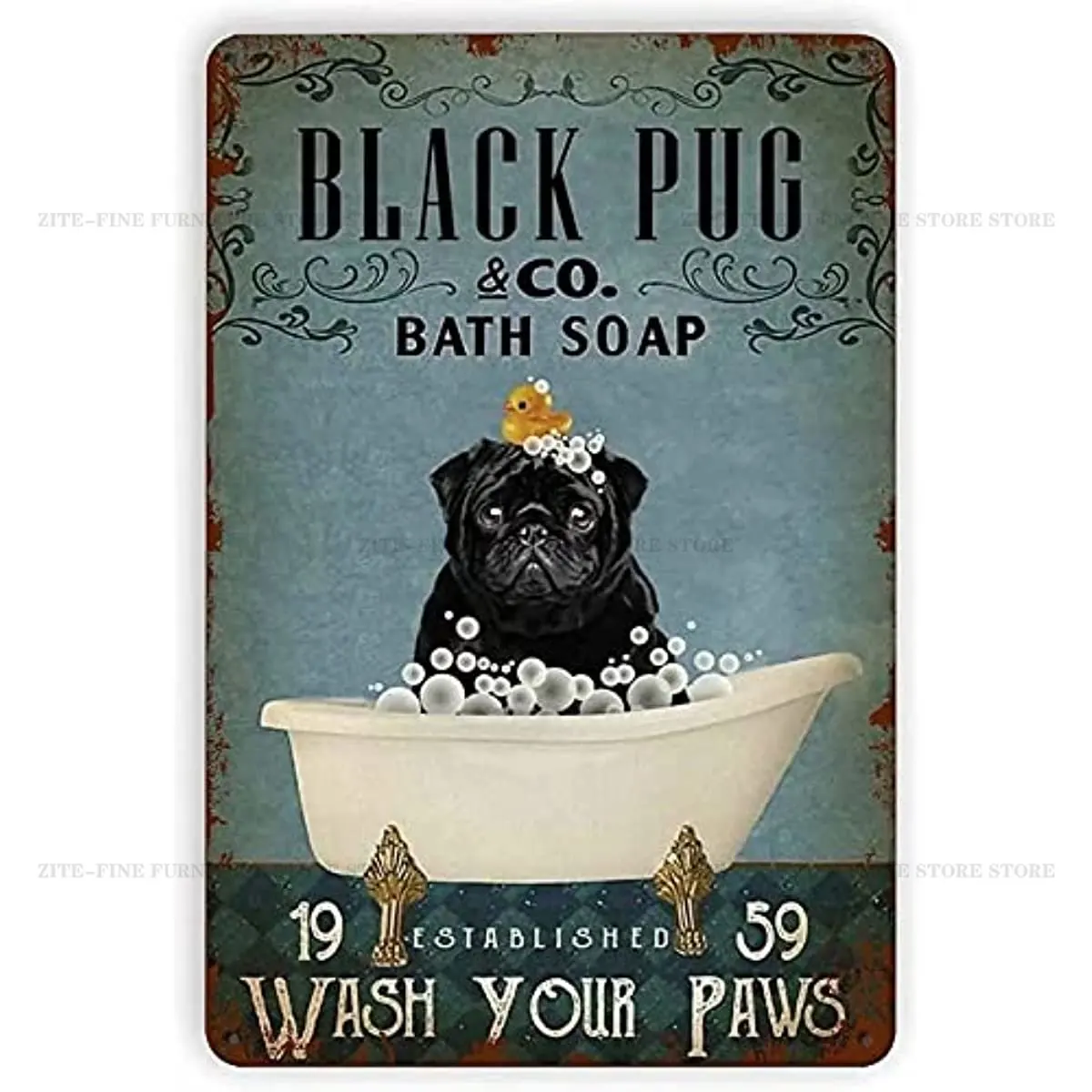 Черный мопс, металлический жестяной знак, черный мопс, мыло для ванной, мытье ваших лап, смешная фотография, столовая, гостиная, ванная комната