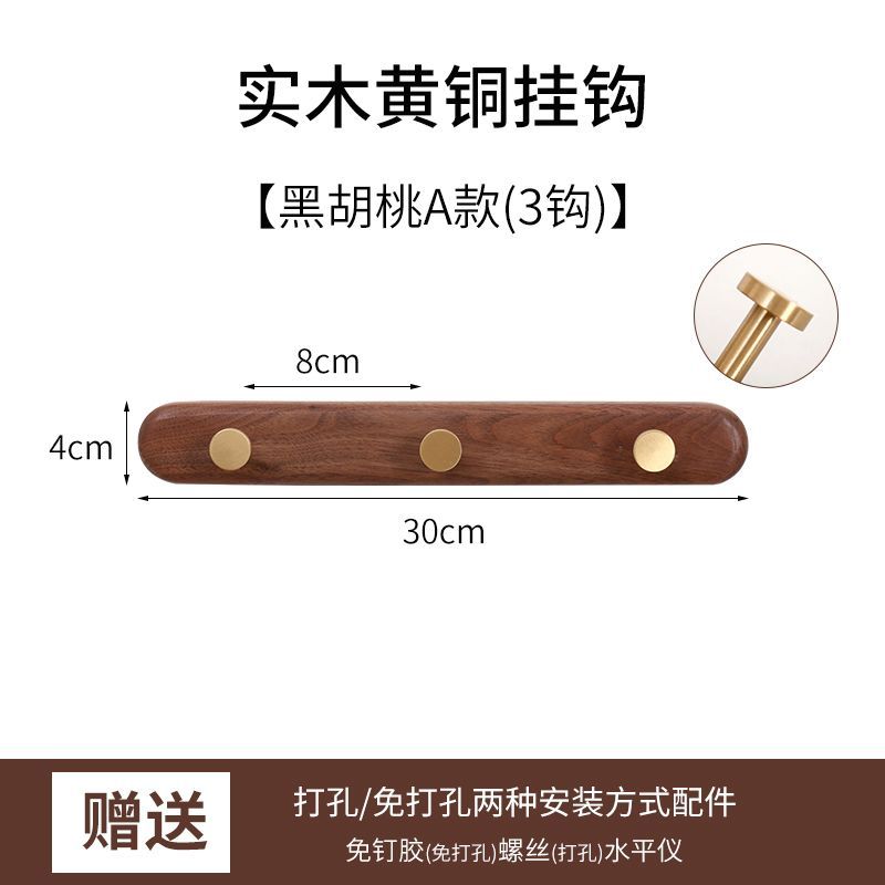 Черный орех Массив дерева Латунный крючок для одежды Прихожая Вешалки для пальто Настенная полка для хранения шарфов, шляп, ключей Мебельный декор