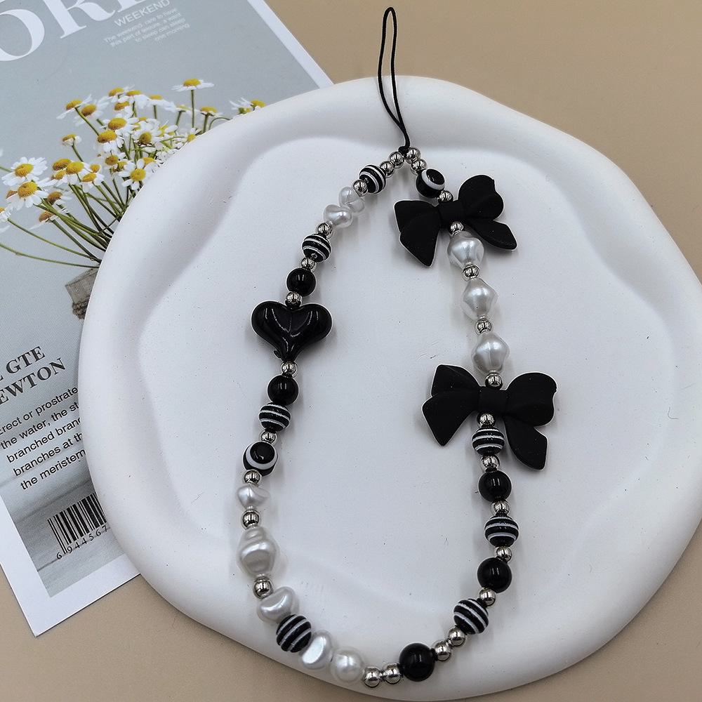 Черный ремешок для мобильного телефона с бисером и бантом в виде бабочки «Любовь» и глазом дьявола.