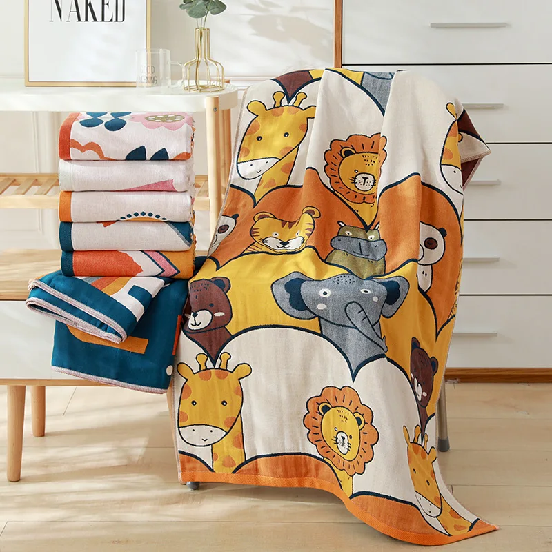 Четырехслойное Марлевое банное полотенце, мультяшная Милая простота, бытовые товары для ванной, модное мягкое абсорбирующее пляжное полотенце для взрослых с животными