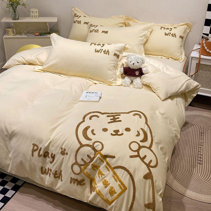 Четыре сезона Универсальные постельные принадлежности Комплект постельного белья из четырех предметов для общежития Стирающийся, приятный для кожи Комплект постельного белья из трех предметов Queen