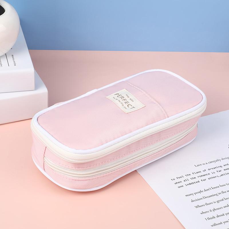Чехол Канцелярские принадлежности Школьные принадлежности для офиса Большая вместимость Пеналы Сумки для хранения на офисном столе Сумки для ручек для студентов и детей розовый