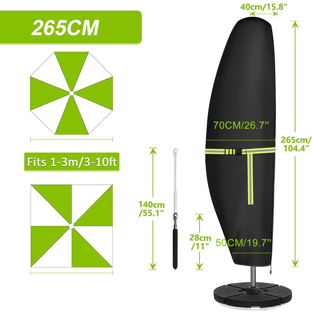 Чехол для зонта на патио, водонепроницаемый, ткань Оксфорд 420D, чехол для зонта на ножках с застежкой-молнией, флуоресцентная лента, ветрозащитный чёрный