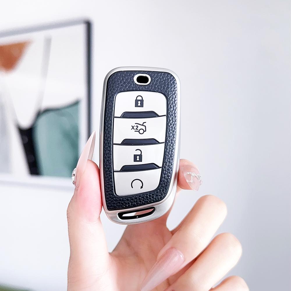 Чехол для ключа-пульта автомобиля из ТПУ кожи для Changan CS25 CS95 CS85 CS35 plus Автомобильная оболочка Брелок Сумка Держатель Бесключевой протектор серебряный